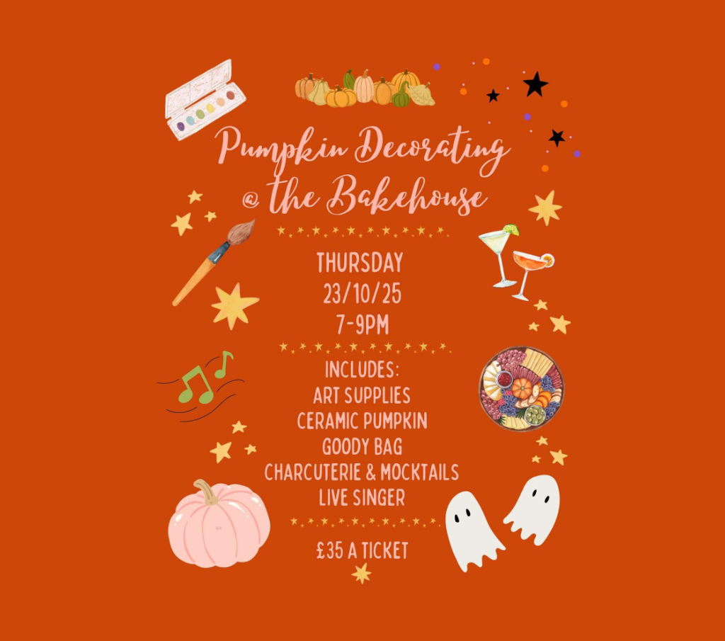 Get into the Autumn spirit and join Lucy’s Little Bake House for a cosy, creative evening full of pumpkins, paint and plenty of treats!
